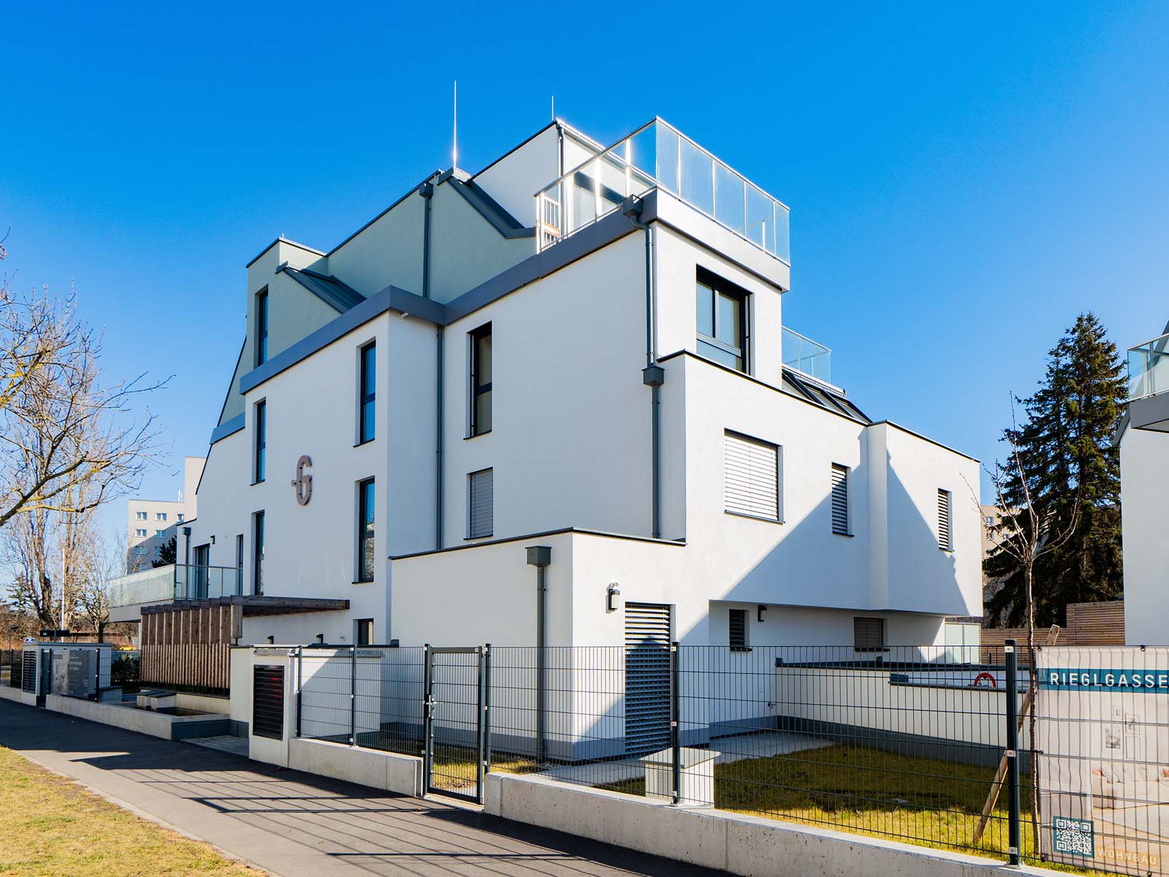 Alle Einheiten verfügen über großzügig dimensionierte Terrassen, im Erdgeschoss entspannen Sie im eigenen Garten. Besonders nachhaltig: Die Photovoltaikanlage am Dach liefert den Strom für die Allgemeinflächen des Wohnbaus, geheizt wird mittels Wärmepumpe. Die Deckenkühlung sorgt für eine sehr angenehme Kühlung in den Sommermonaten. Zu jeder Wohnung gehört ein eigenes Kellerabteil und Ihr Auto parken Sie ganz bequem und sicher in der hauseigenen Tiefgarage.