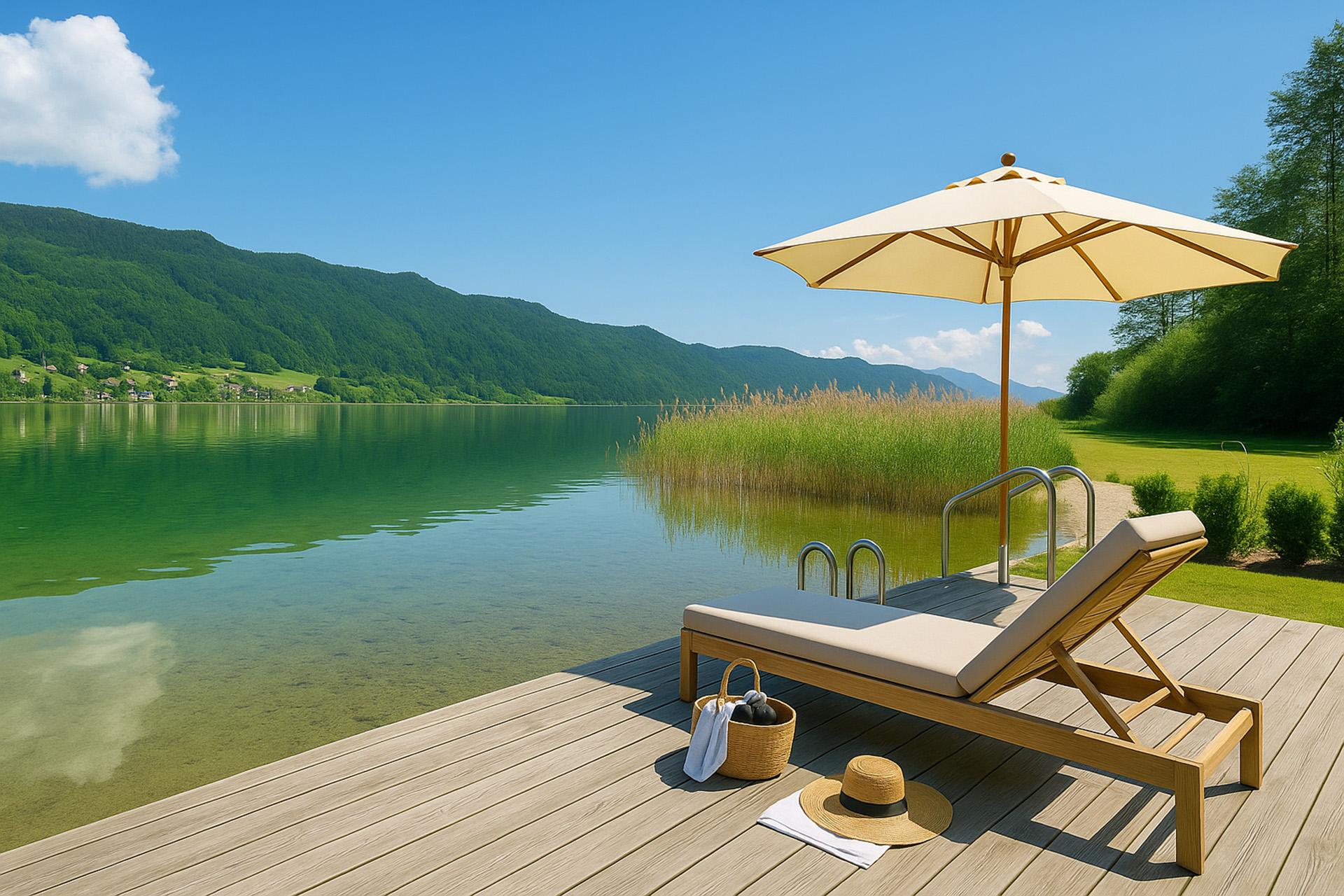 Die Liegenschaft befindet sich direkt am Ufer des malerischen Ossiacher Sees, nur wenige Schritte vom Wasser entfernt. Genießen Sie atemberaubende Sonnenuntergänge und einen herrlichen Blick auf das glitzernde Wasser.
