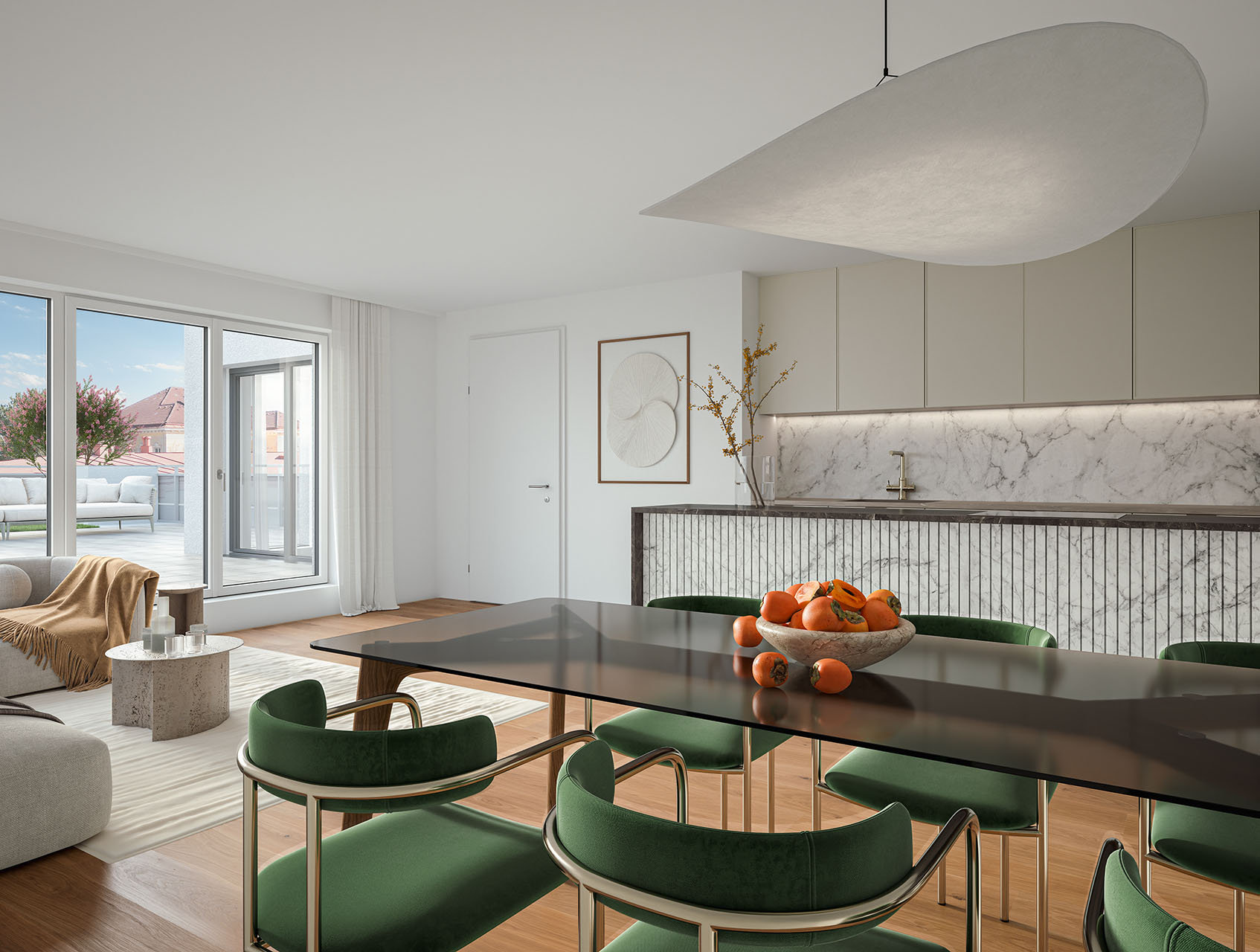 Hochwertige Ausstattung mit Echtholzparkett, Deckenheizung / ‑kühlung und elektrischen Raffstores trifft auf nachhaltige Geothermie‑Wärmepumpen und Photovoltaik. Eine hauseigene Tiefgarage, U4-Anbindung in wenigen Gehminuten, das Auhof Center mit über 150 Shops sowie Kindergärten und Schulen in direkter Nähe machen dieses Projekt zum unvergleichlichen Zuhause.