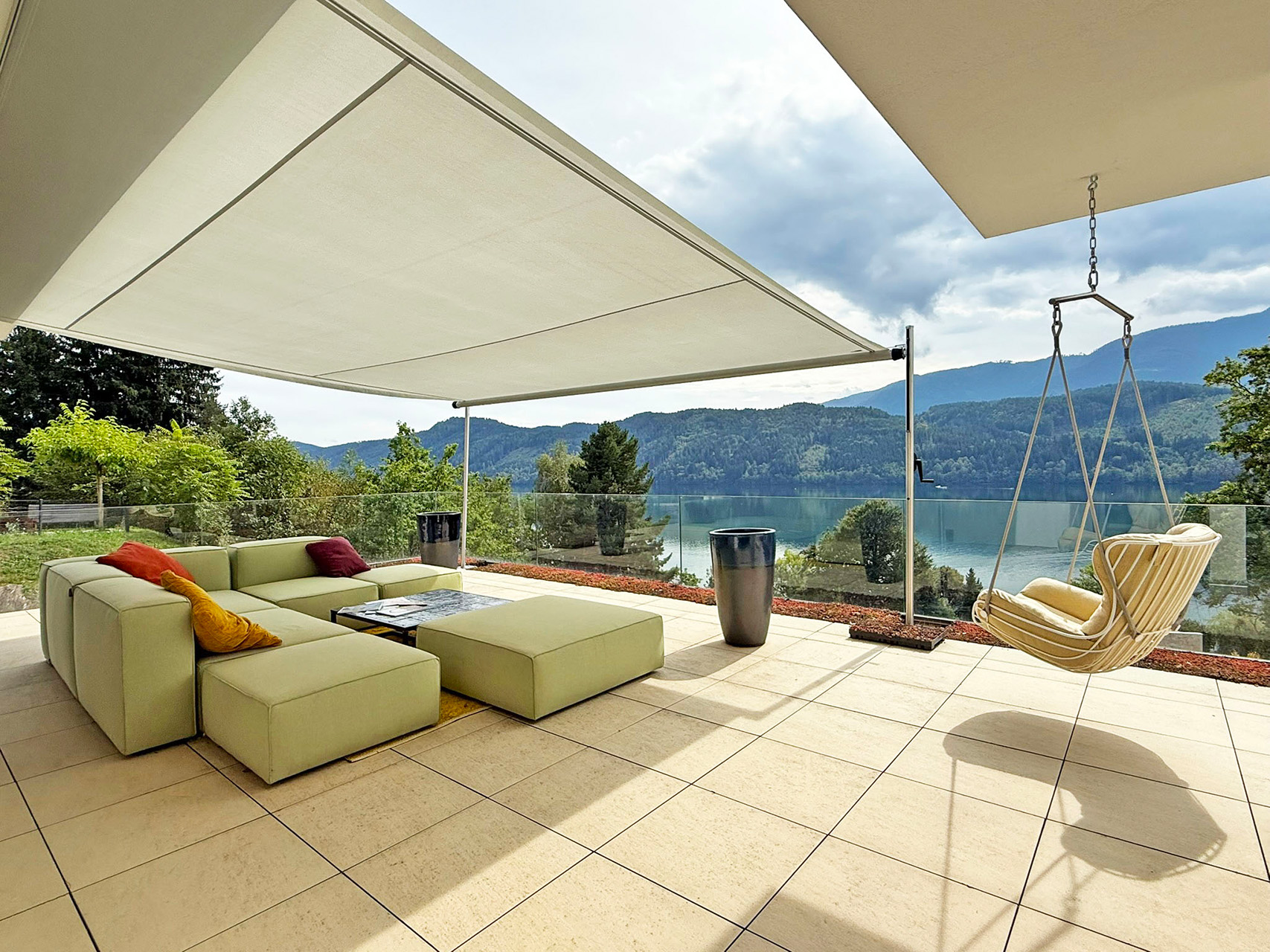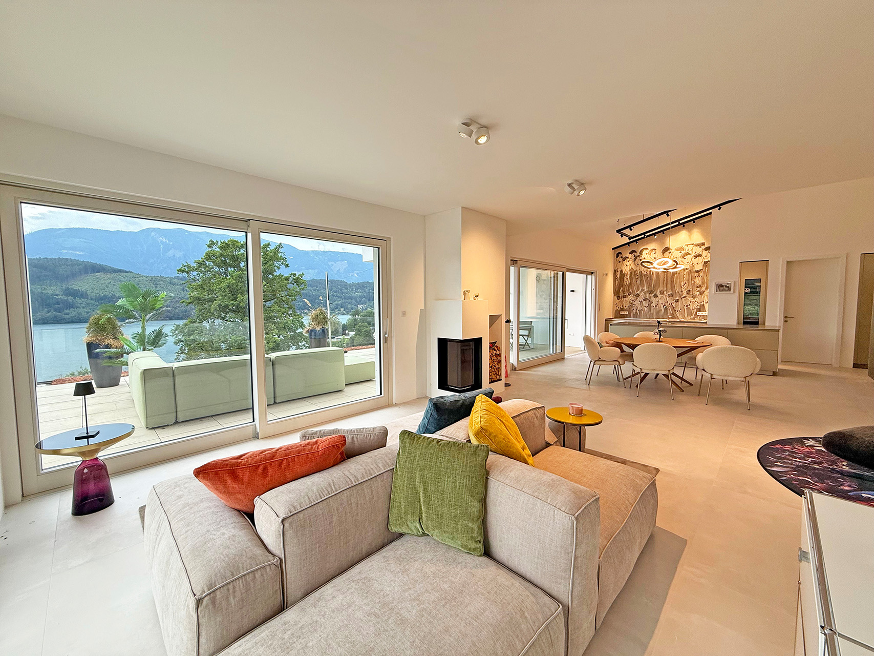 Dank Südausrichtung, großflächigen Glasfronten und modernem Design wird jeder Raum mit natürlichem Licht geflutet und öffnet den Blick auf See und Berge. Der Lift führt direkt in die privaten Räumlichkeiten – alternativ steht auch ein separater, privater Treppenaufgang zur Verfügung.