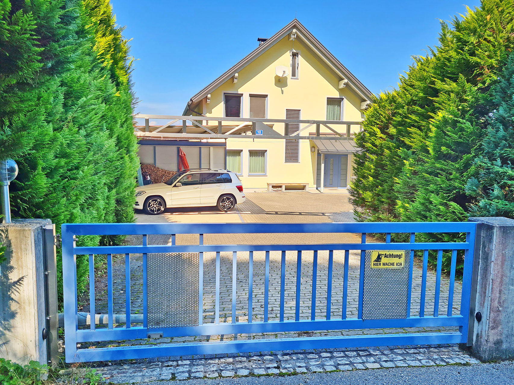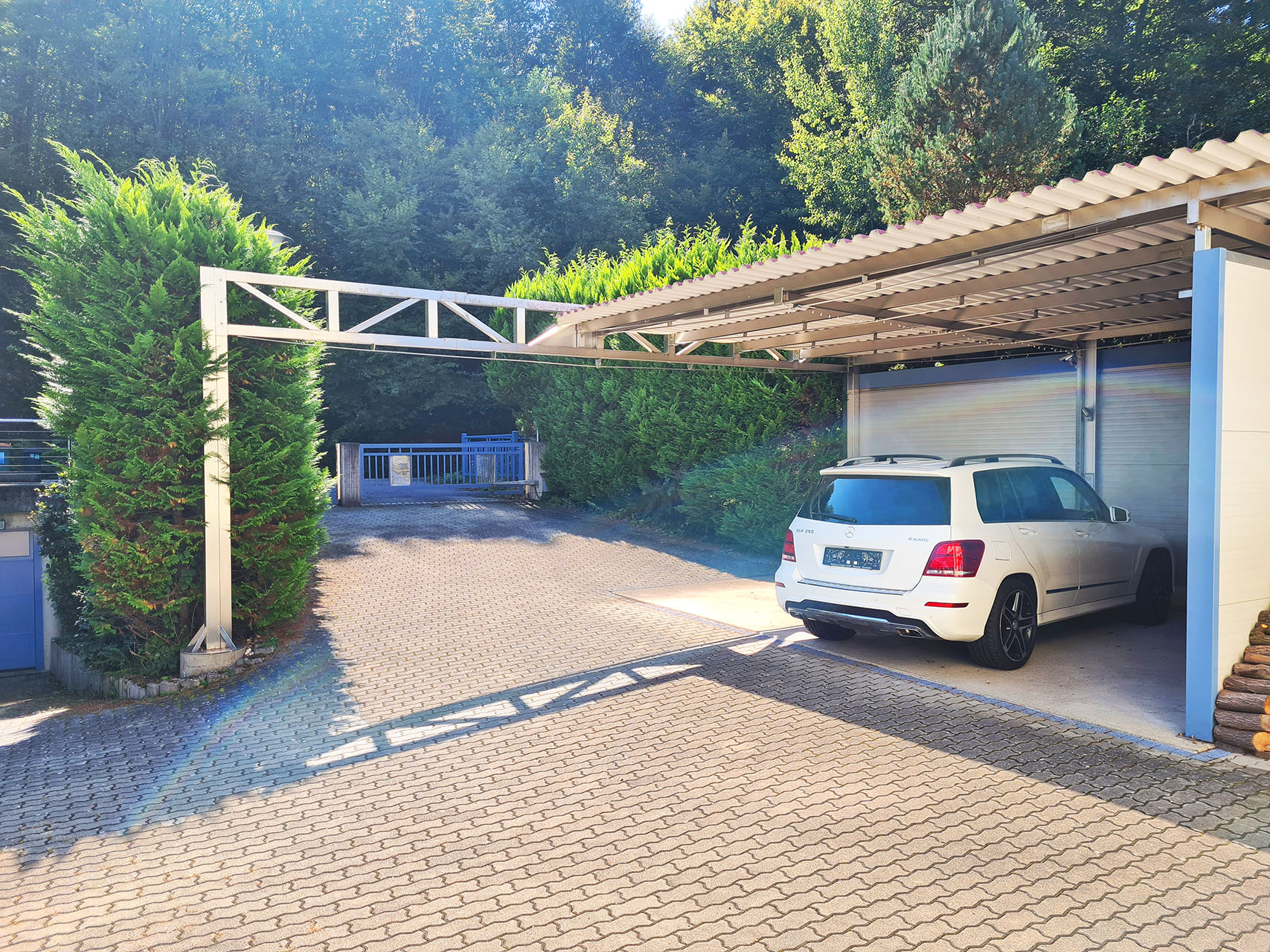 - Glasgeländer, Edelstahl-Carport & elektrische Toranlage