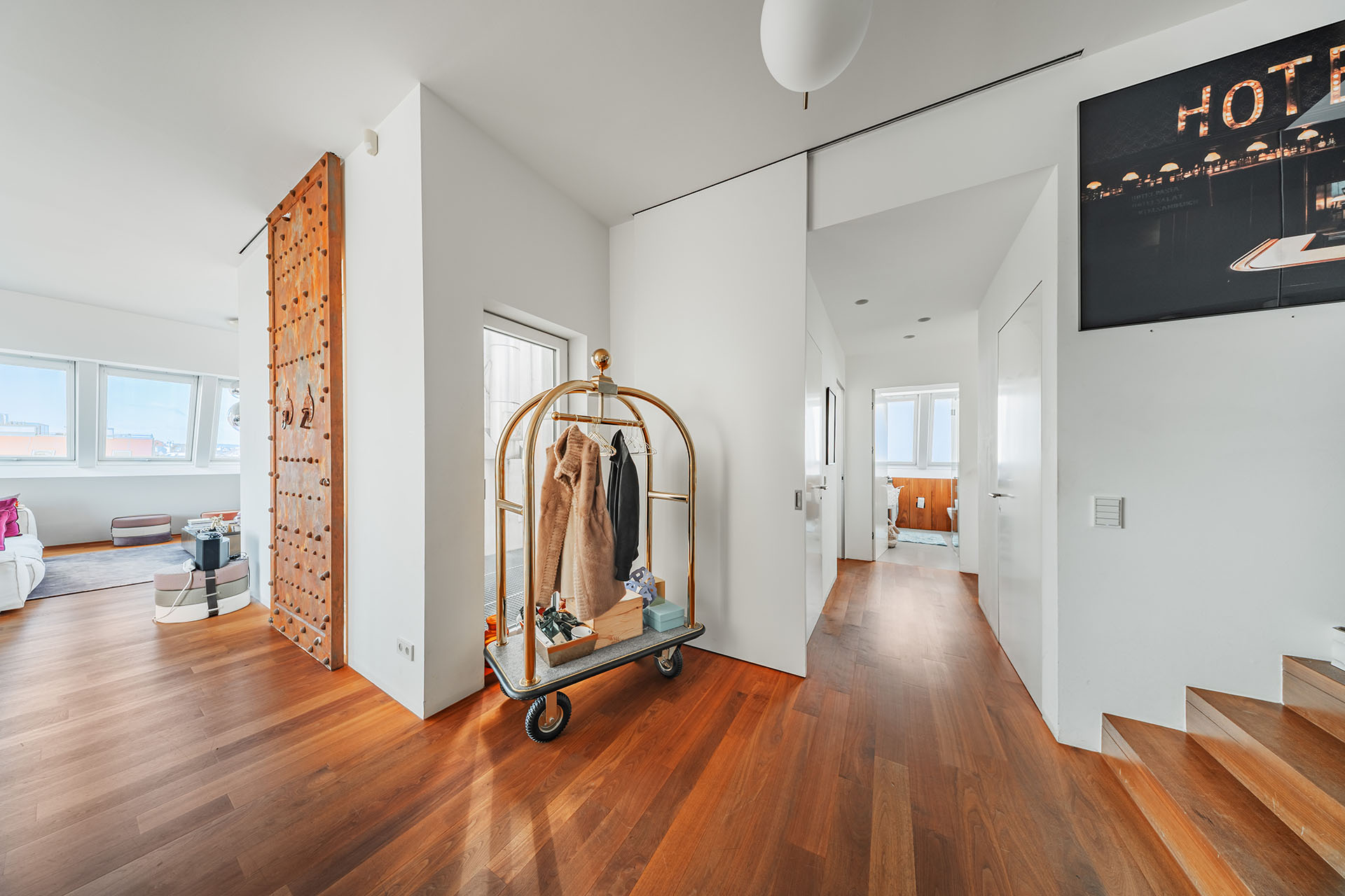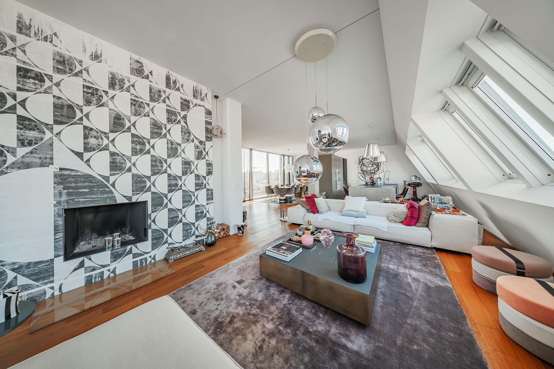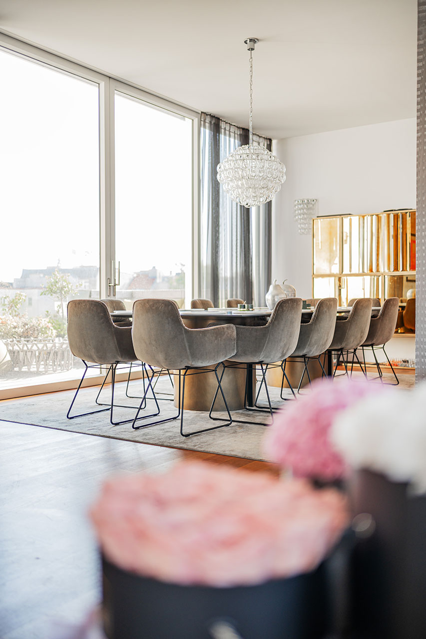 Edle Materialien und maßgefertigte Details verleihen der Wohnung ihren unverwechselbaren Charakter. Funktionalität trifft auf zeitlose Eleganz.