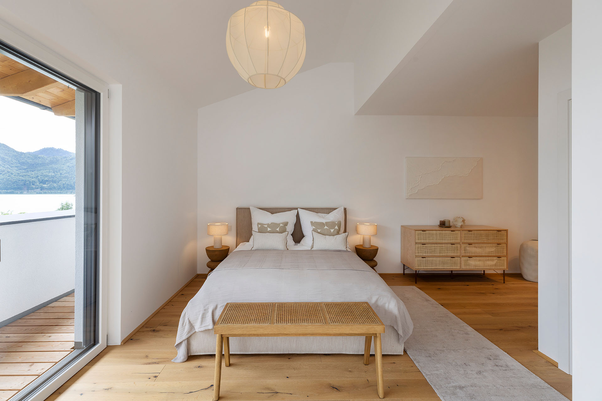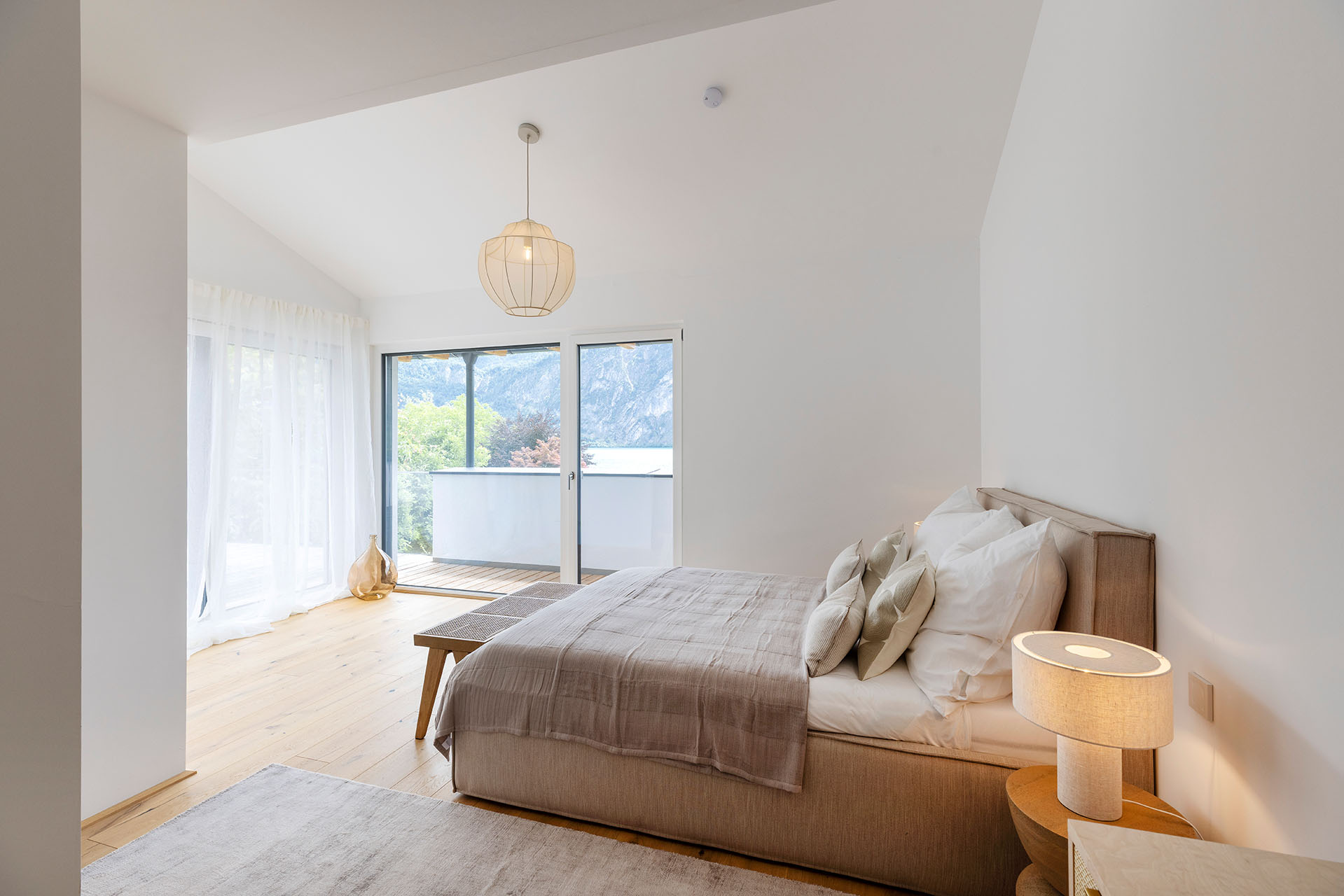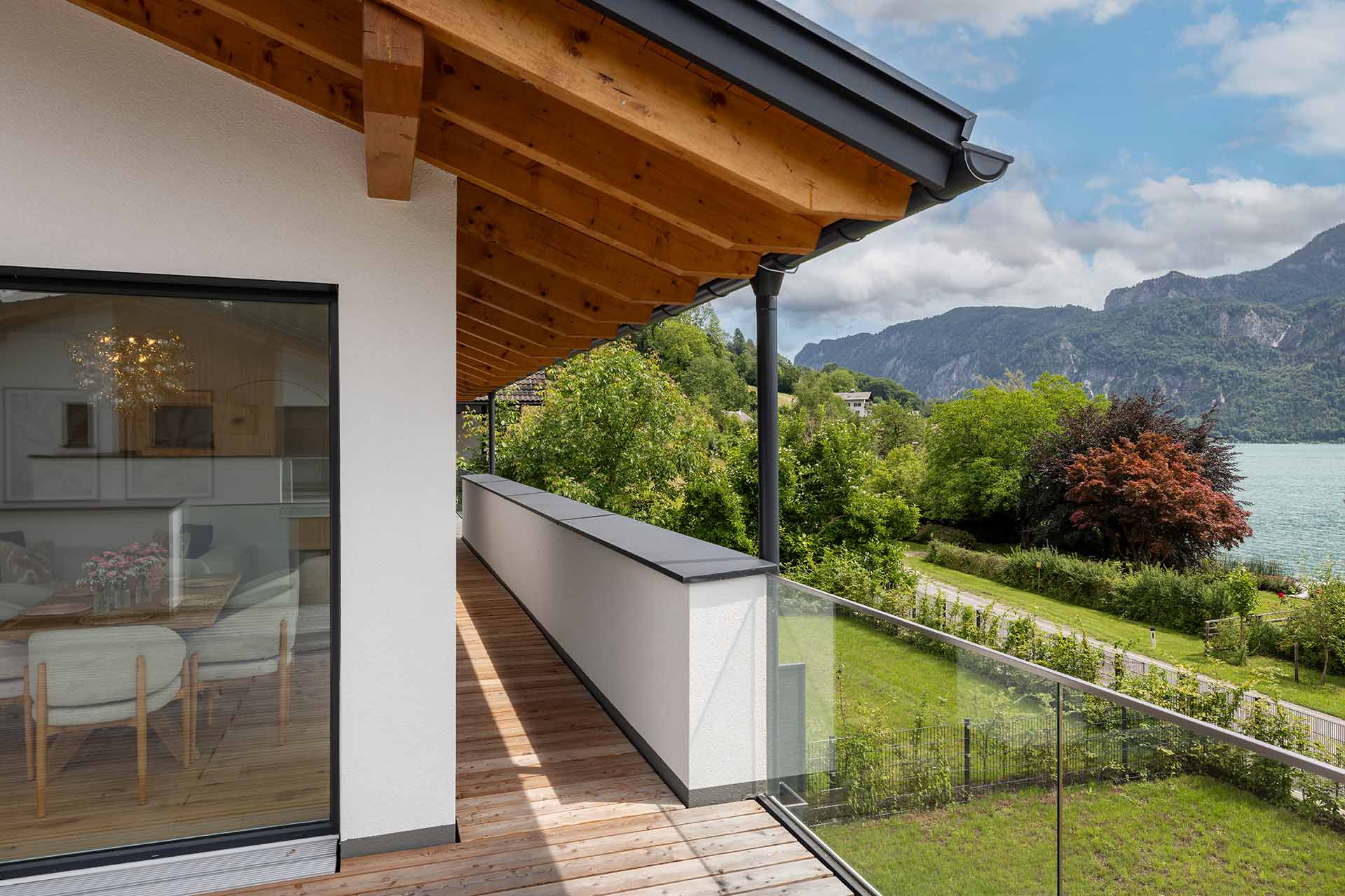 Diese exklusiven Penthouse-Wohnungen am Mondsee begeistern durch außergewöhnlich großzügige Terrassen, die den Wohnraum nahtlos ins Freie erweitern. Der unverbaute Blick auf den Mondsee und die umliegende Bergwelt schafft zu jeder Tageszeit eine einzigartige Wohnatmosphäre. Ob Frühstück mit Seepanorama oder Sonnenuntergang über dem Wasser – hier wird Wohnen zum täglichen Urlaubserlebnis, kombiniert mit Seezugang auf Eigengrund und modernem Wohnkomfort.